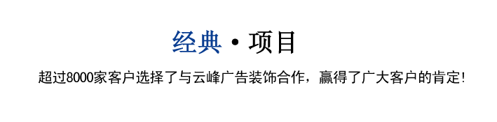 葫蘆島市云峰廣告裝飾有限公司自創(chuàng)立以來,一直致力于廣告牌的設(shè)計,噴繪,制作,安裝、LED工程、亮化工程、數(shù)碼圖文、圍擋制作安裝、三面翻廣告、大型擎天柱廣告、草坪牌、指示牌、雕刻背景墻、燈箱設(shè)計、標(biāo)識標(biāo)牌、金屬制品、亞克力字、展臺展柜、取款機(jī)隔斷、取款機(jī)隔斷等一體化服務(wù),是葫蘆島市噴繪行業(yè)大規(guī)模實業(yè)公司。